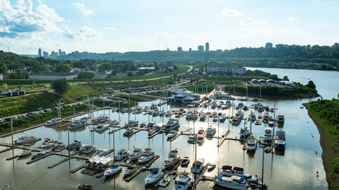 Discover one of the Ohio River’s best-kept secrets. Tucked behind the bend in Dayton, Manhattan Harbour is a quiet haven with grassy hills, private docks, and calm water. Whether you're stopping by for lunch or staying the whole season, it's the perfect place to dock, unwind, and soak up the view.